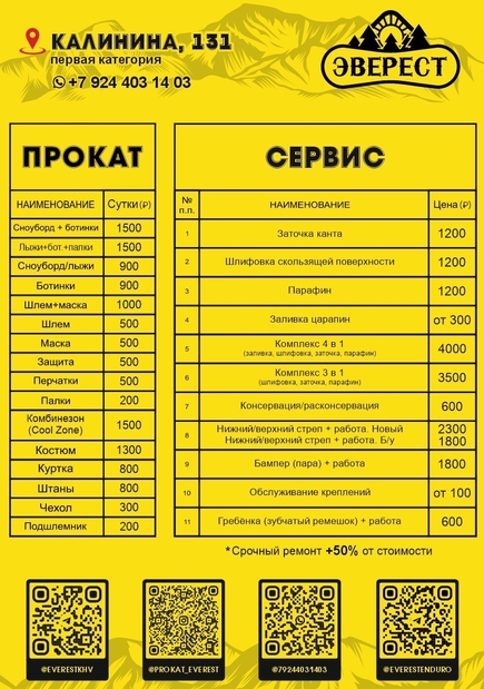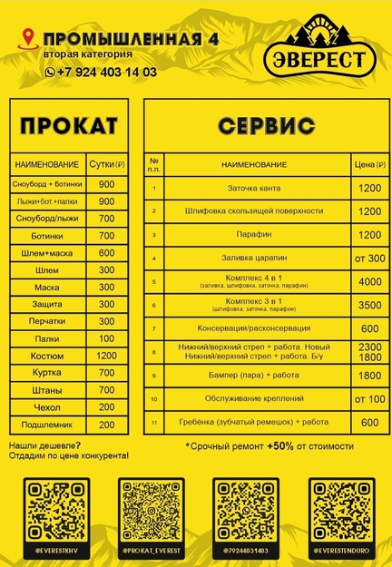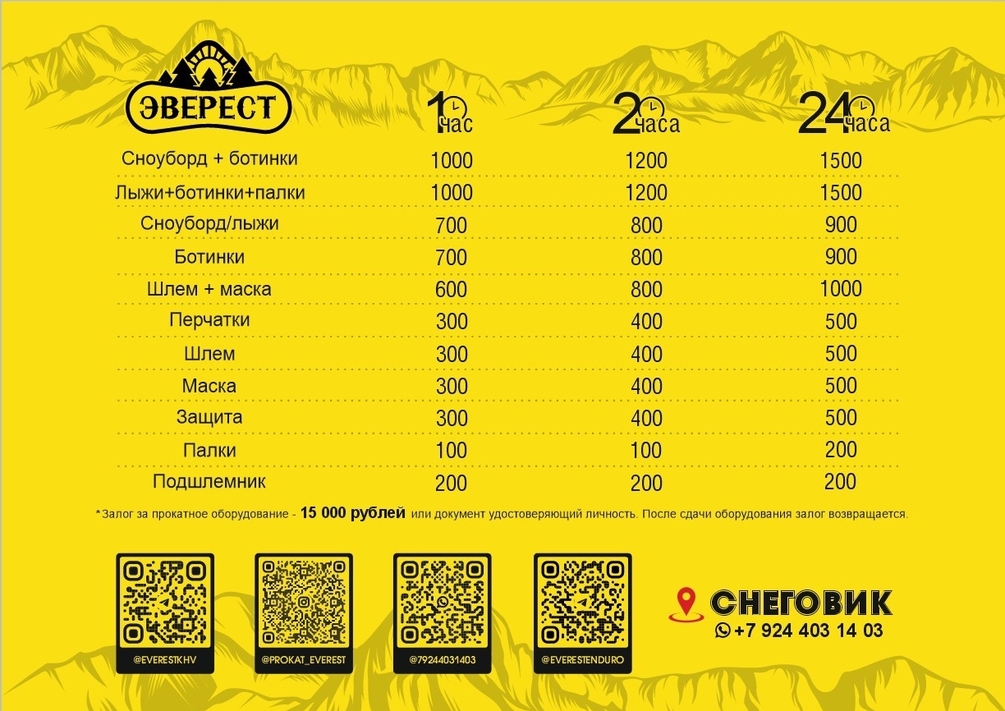 Мы бережно относимся к своему снаряжению, чтобы все наши гости катались только на исправном оборудовании. Именно поэтому мы берем залог. После возврата снаряжения залог будет полностью возвращен, если оборудование будет возвращено в исправном состоянии.